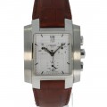Nice square Tissot chronograph in steel on leather strap, folding clasp