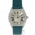 Een zeer mooie dames Cartier in het witgoud met lederen band en witgouden vouwsluiting. Dit Tortue model is origineel bezet met briljant geslepen diamanten.