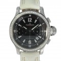 Nice ladies Jaeger-LeCoultre Master Compressor. This chronograph is original fabric mounted with diamonds at the bezel