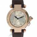 Een weinig voorkomende Cartier Pasha in het rozegoud met lederen band en vouwsluiting.