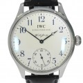 Barely worn IWC F.A. Jones in steel on leather. This limited piece comes with the original numbered box and all papers