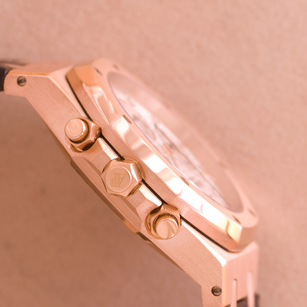 Werkelijk in nieuw staat verkeerende roze gouden Audemars Piguet Offshore Chronograaf. Slechts een paar maal gedragen. Compleet met doos en bijbehorende papieren.