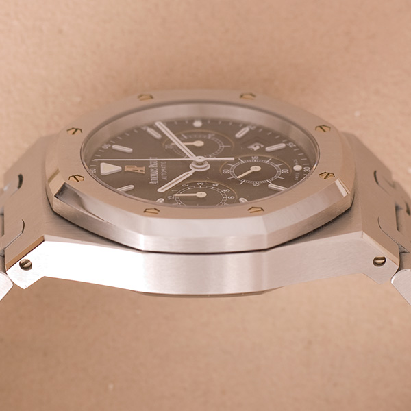 In prima staat verkeerende stalen Audemars Piguet heren polshorloge. Deze Royal Oak heeft en automatisch uurwerk, een chronograaf functie en datum. Stalen band met vouwsluiting.