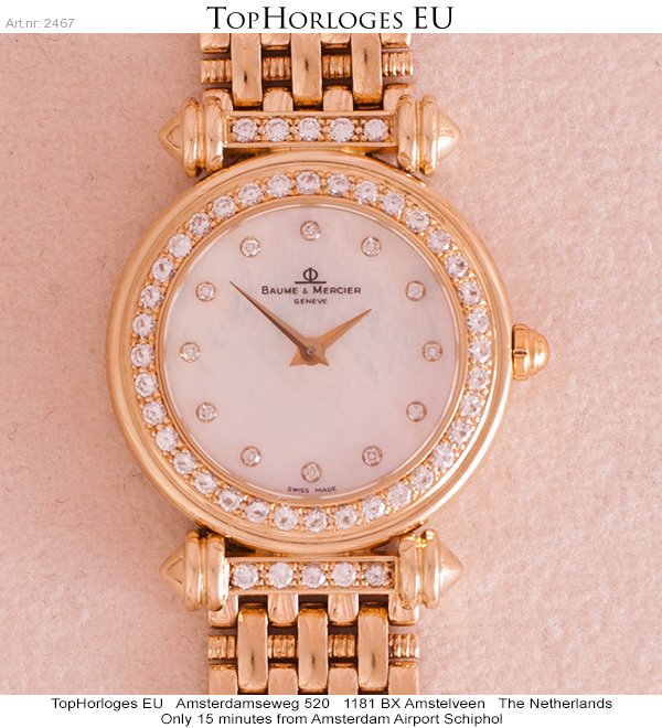Een geelgouden dames Baume & Mercier horloge met gouden band.