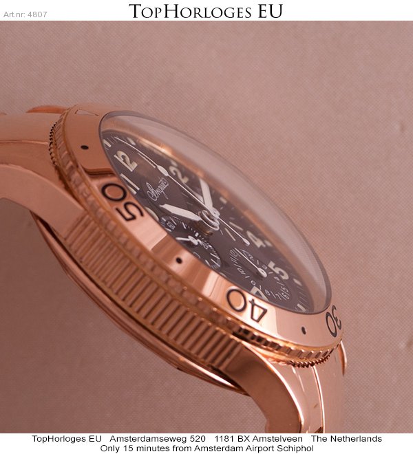 Beautiful, like unworn, Breguet Aeronavale, Type XX rosegold with rosegold bracelet. This stunning piece has a deep-dark blue dial with white arabic index. The watch is totaly checked/serviced and comes with the original wings-box and papers.