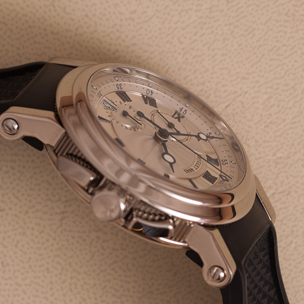 A beautiful Brequet Marine. This almost unworn whitegolden Chronograph comes complete with the box and papers (201EU)