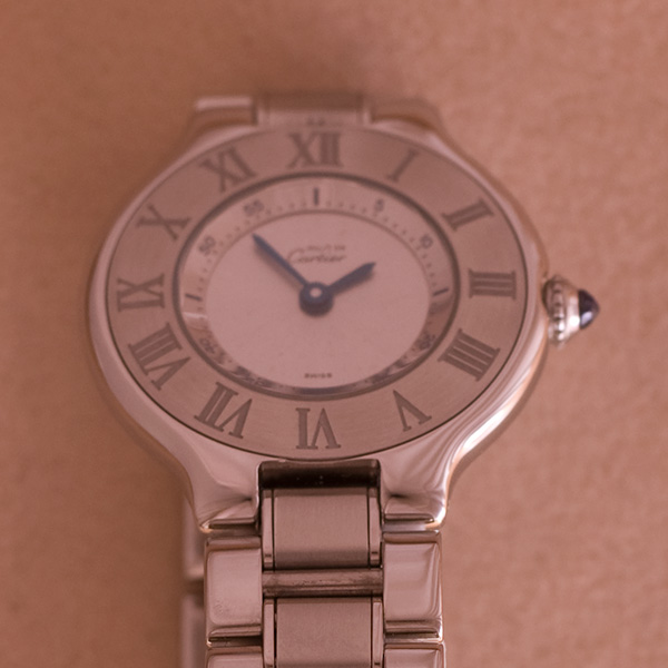 Mooie stalen dames Cartier 21 met stalen band.