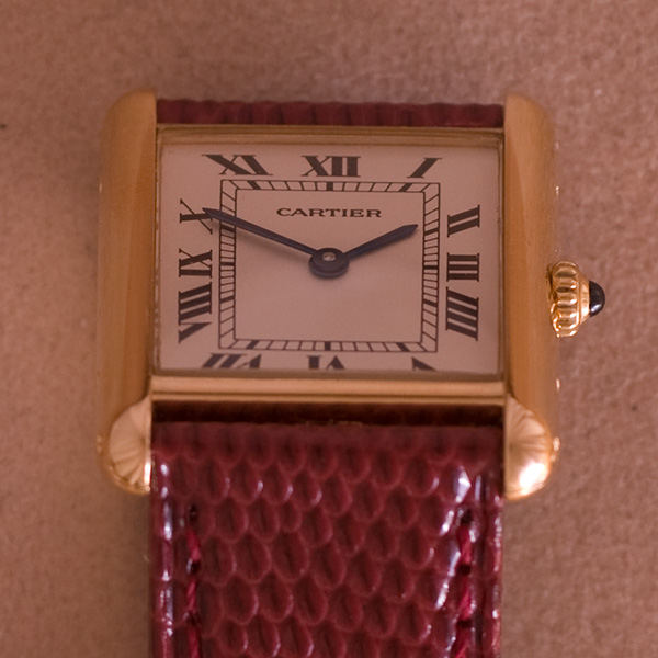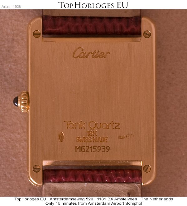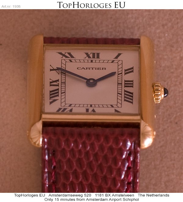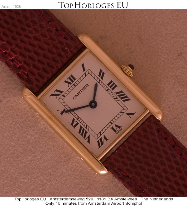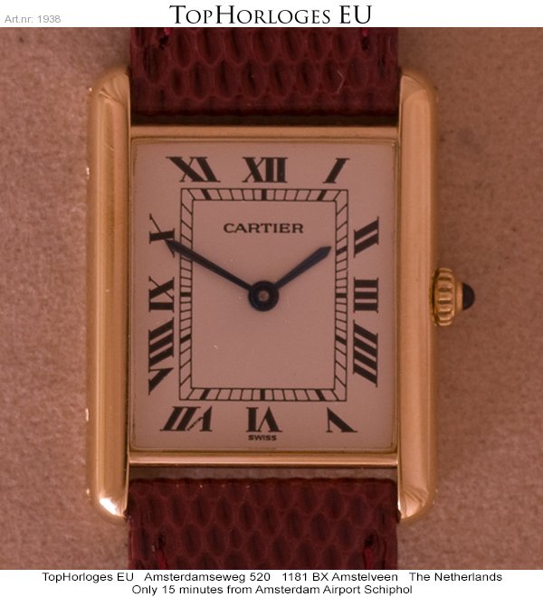 Een weinig gedragen Cartier Tank GM, grote maat met lederen band en gouden sluiting.