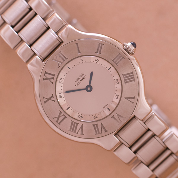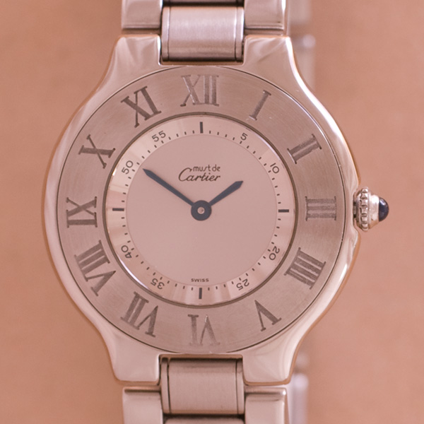 In zeer goede staat zijnde stalen Must de Cartier 21 GM, grote uitvoering.