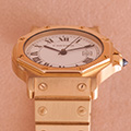 Een haast ongedragen gouden Cartier Santos Ronde Automatic met gouden band. Deze icoon uit de jaren 90 is werkelijk in een nieuw staat.