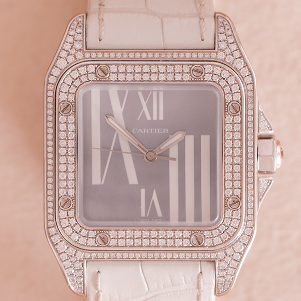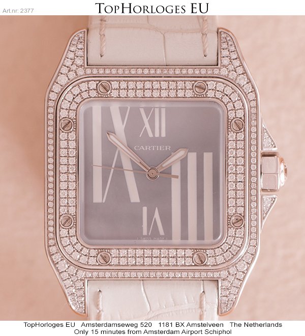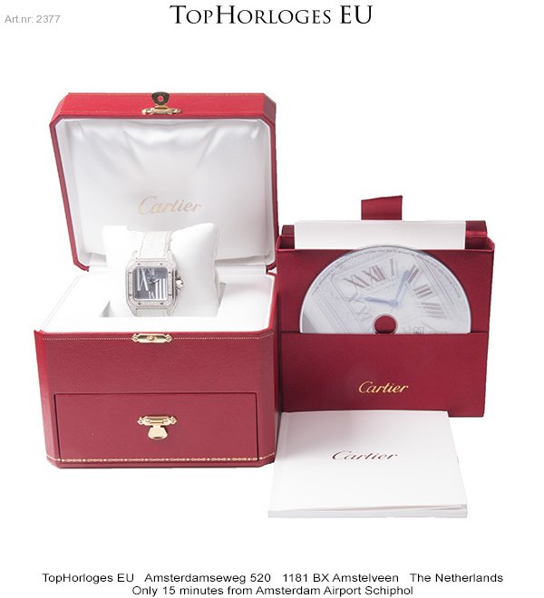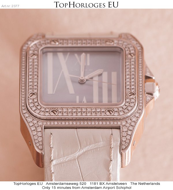 Original white gold & diamond Cartier Santos 100 medium model, Mother of Pearl. (Sug.Ret.Price: €29.000,-)