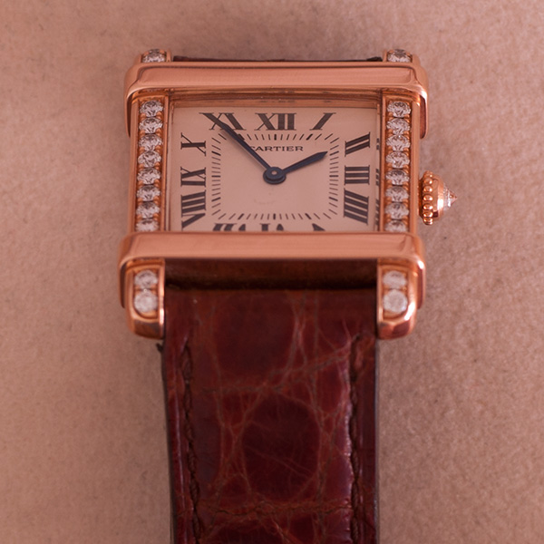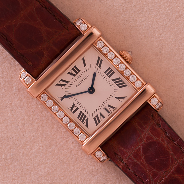 Een schitterende rose gouden, origineel door de fabriek gezette dames Cartier Tank Chinoise. Deze haast ongedragen Cartier is geheel compleet met doos en papieren.