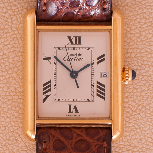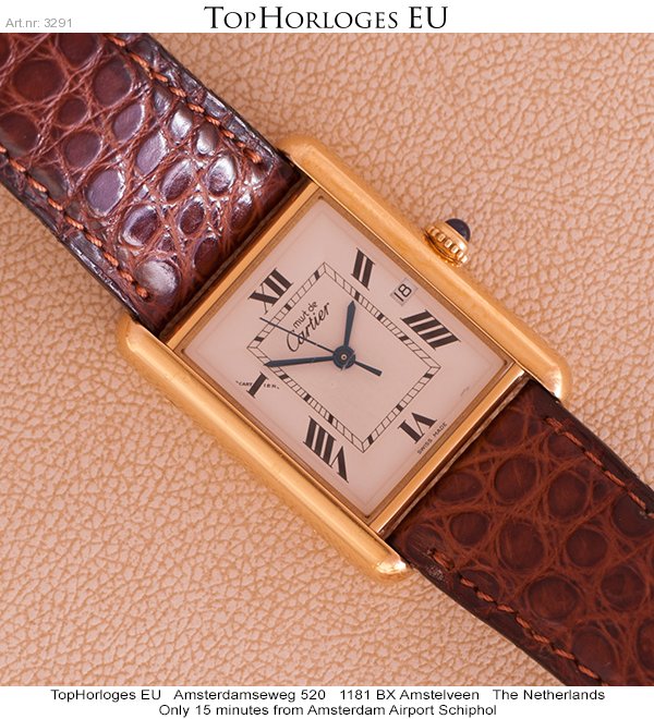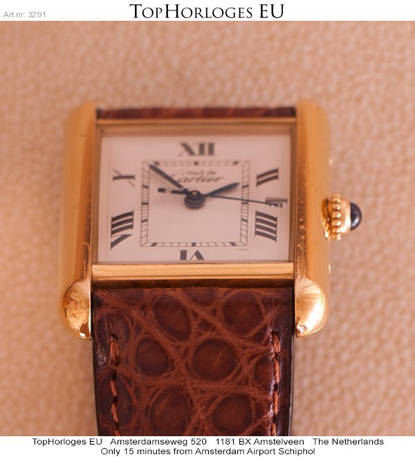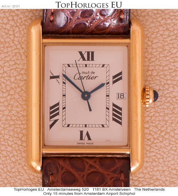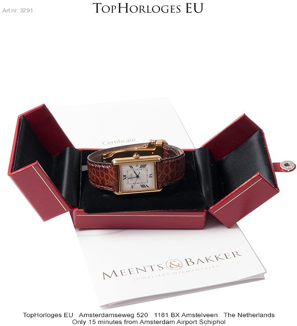 Een weinig gedragen Cartier Tank horloge, groot model met datum.