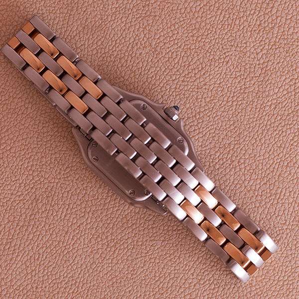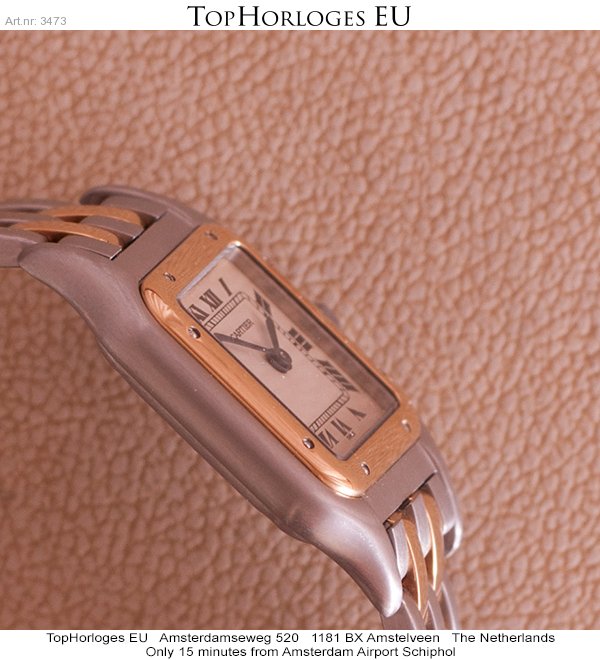 Een mooie Cartier panthere Petit Model in het staal met 2 rijen goud.
