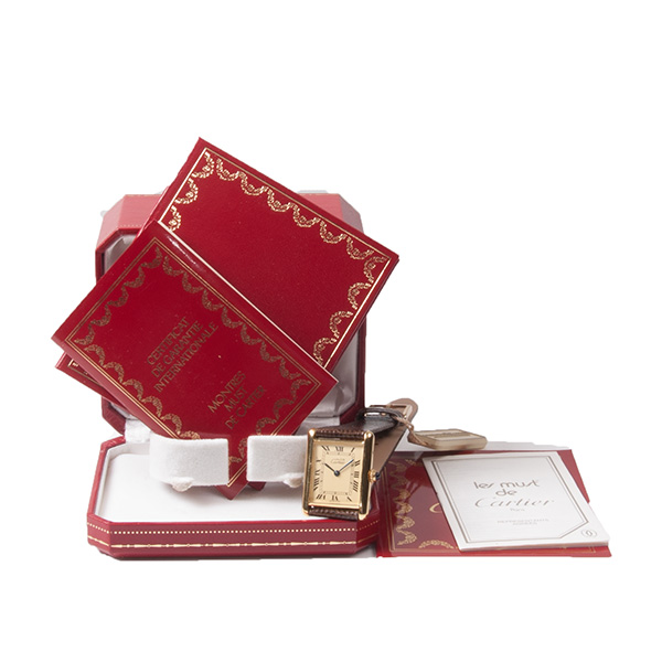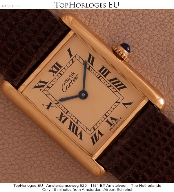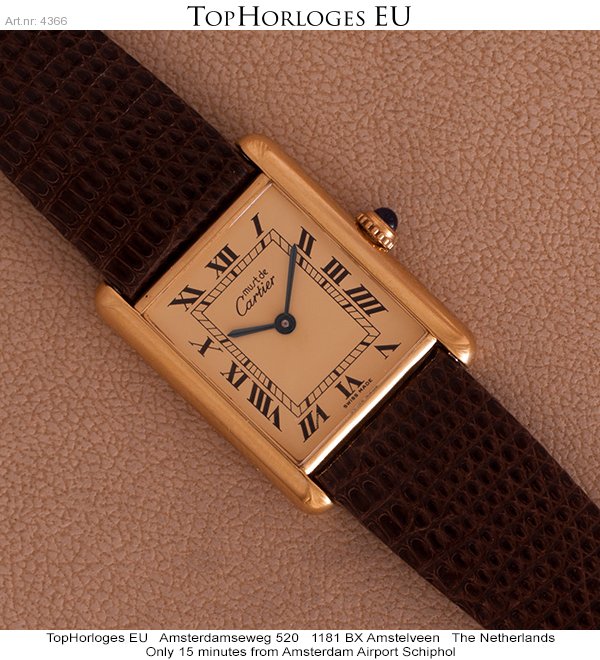 Een zeer mooie, compleet serviced (09/2014) Cartier Tank vermeil.