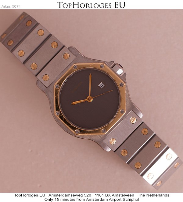 Een weinig voorkomende goud-stalen Cartier Octagon Automatic. Deze 30mm uitvoering is in een prachtige staat en heeft een antraciet grijze wijzerplaat.