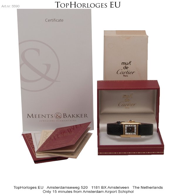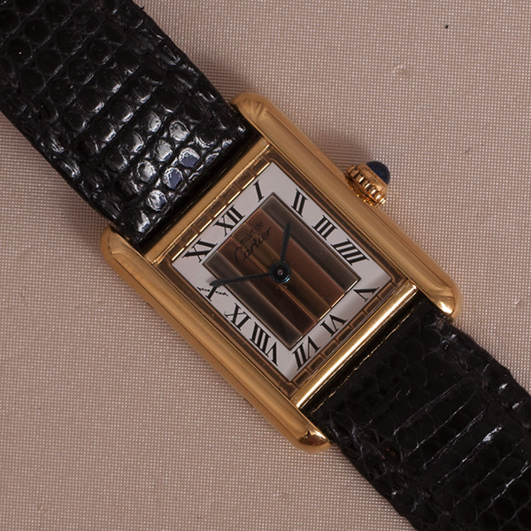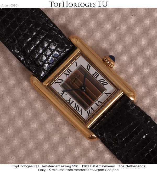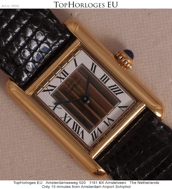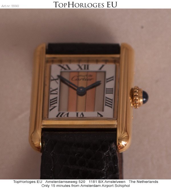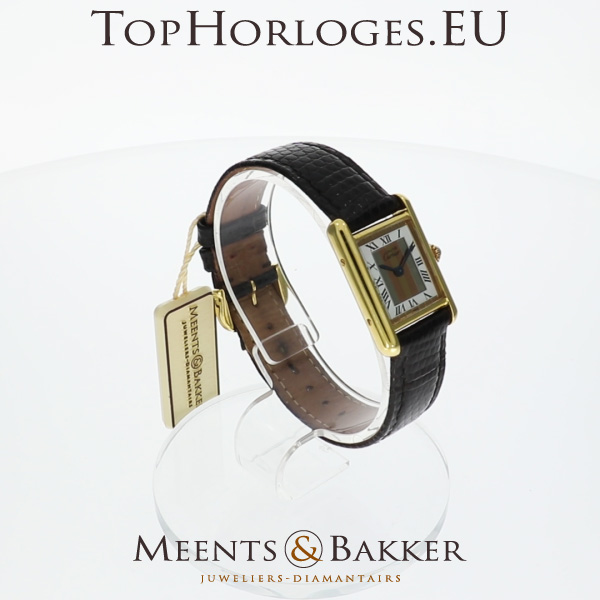 Een zeer mooie dames Cartier Tank Vermeil, trinity dial, met lederen band.
