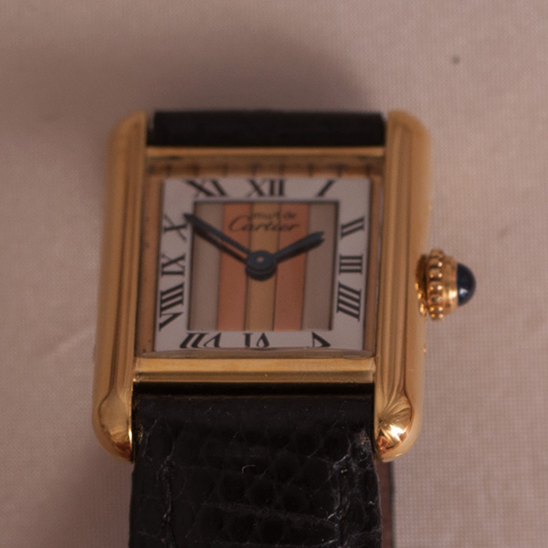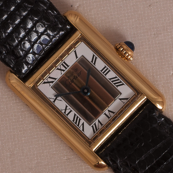 Very nice Cartier Tank Vermeil ladies Model, trinity dial with leather strap.