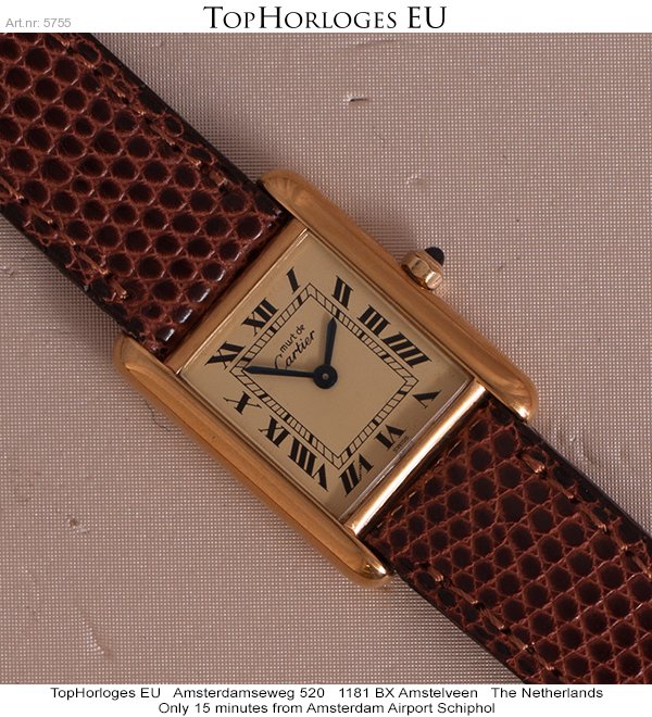 Een zeer mooie dames Cartier Tank Vermeil met nieuwe leren band.