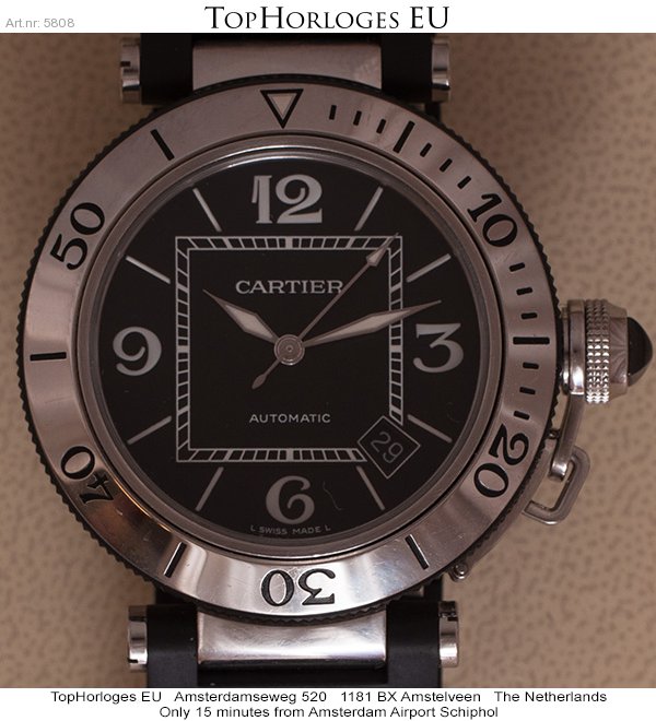 Beautiful Cartier Seatimer automatic in steel with black rubber.