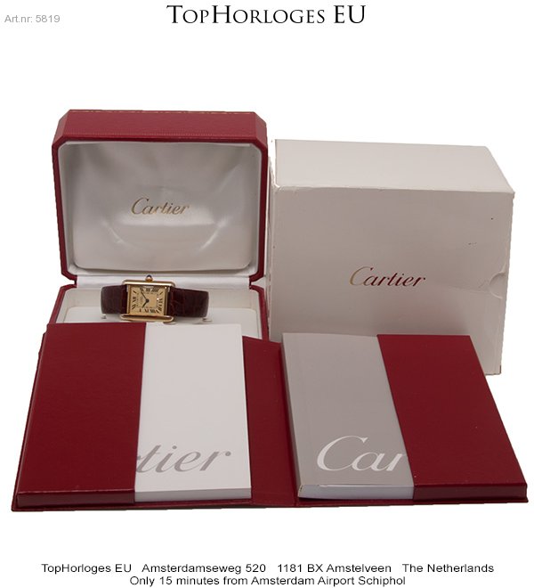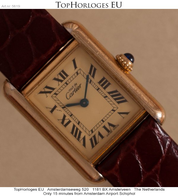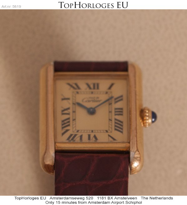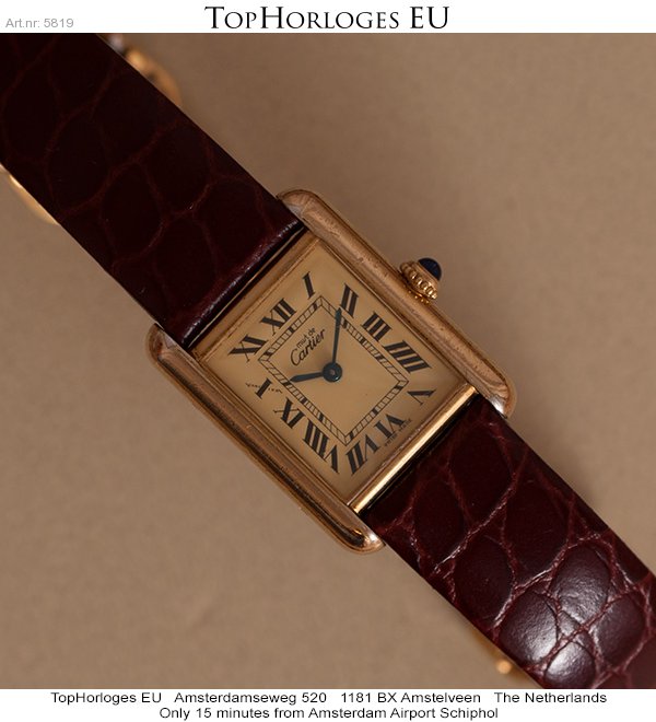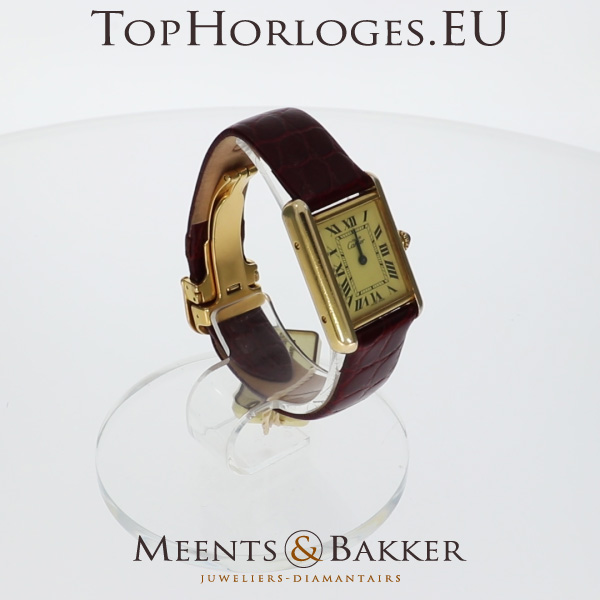 Een zeer mooie dames Cartier Tank Vermeil met nieuwe generieke lederen band en vouwsluiting.