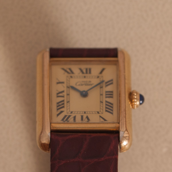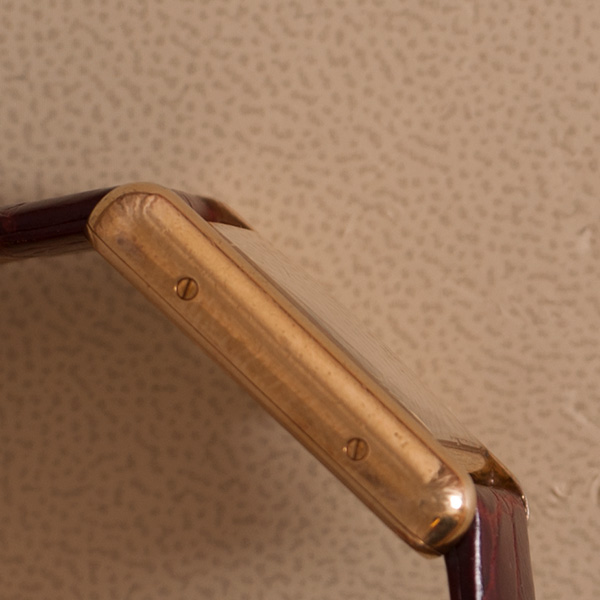 Beautiful Cartier Tank vermeil ladies with new generic leather strap and folding clasp.