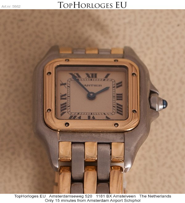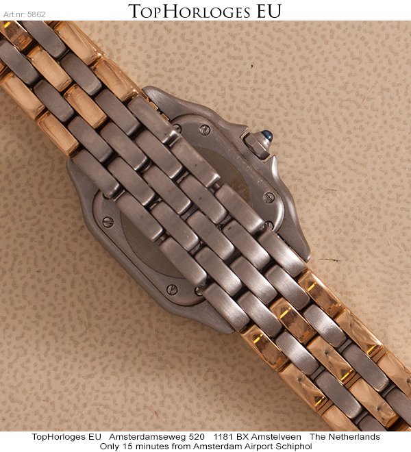 Mooie goud met stalen Cartier Panthere. Deze dames uitvoering met 3 rijen goud, is in een pracht staat.