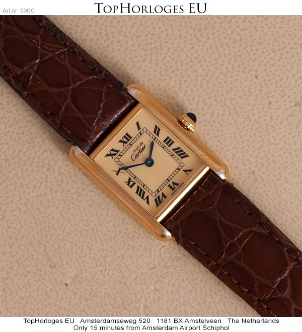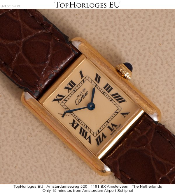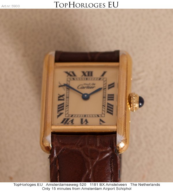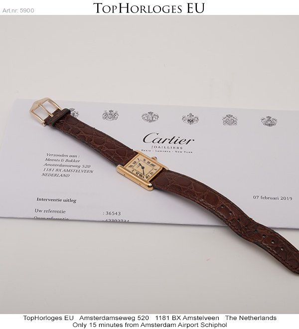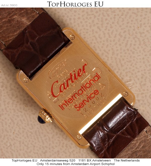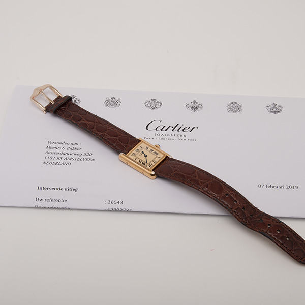 Een mooie Cartier Tank Vermeil. Onlangs geheel geserviced door Cartier (02/2019) met 2 jaar garantie.