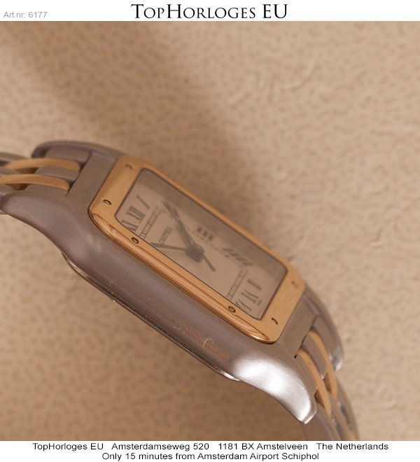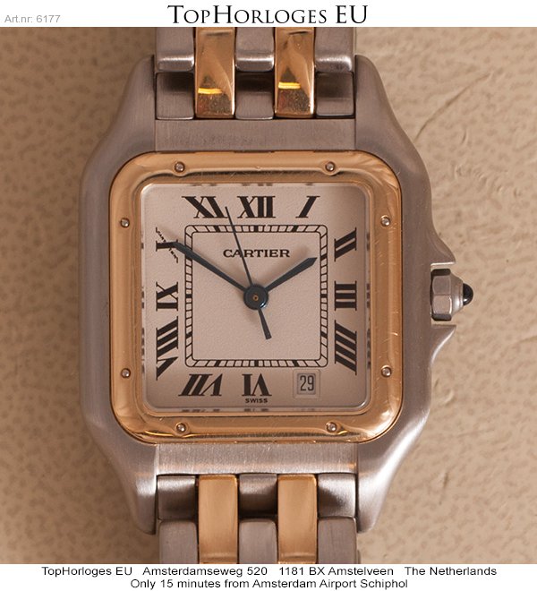 Mooie goud met stalen Cartier Panthere. Deze grote uitvoering met datum heeft 2 rijen goud en is in een pracht staat.