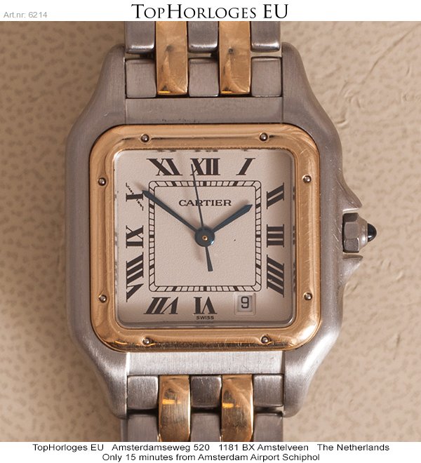 Mooie goud met stalen Cartier Panthere. Deze grote uitvoering met datum heeft 2 rijen goud en is in een pracht staat.