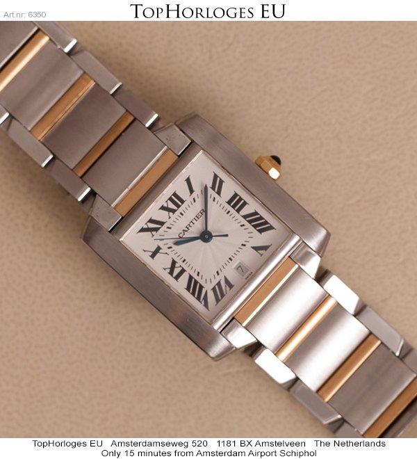 Barely worn Tank Francaise yellowgold-steel. Large model with automatic movement and date window at 6 o'clock