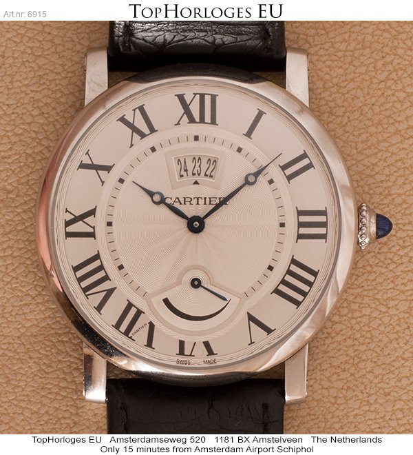 Nieuw & ongedragen Cartier RotondePower Reserve in het staal met lederen band en vouwsluiting.