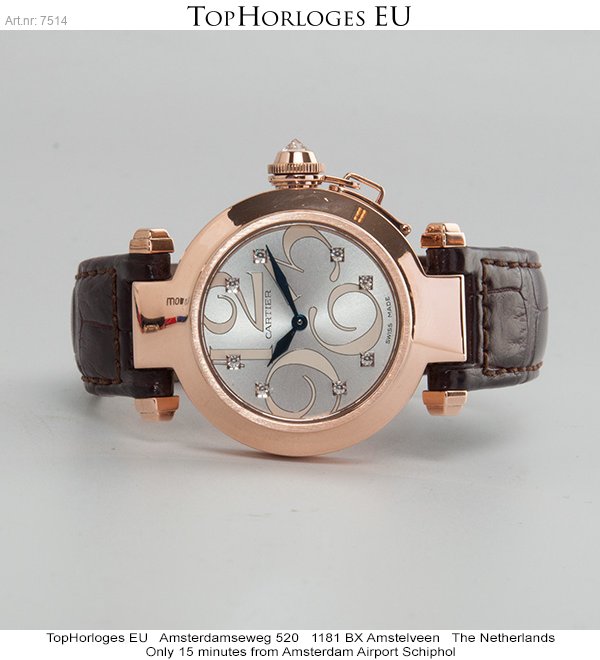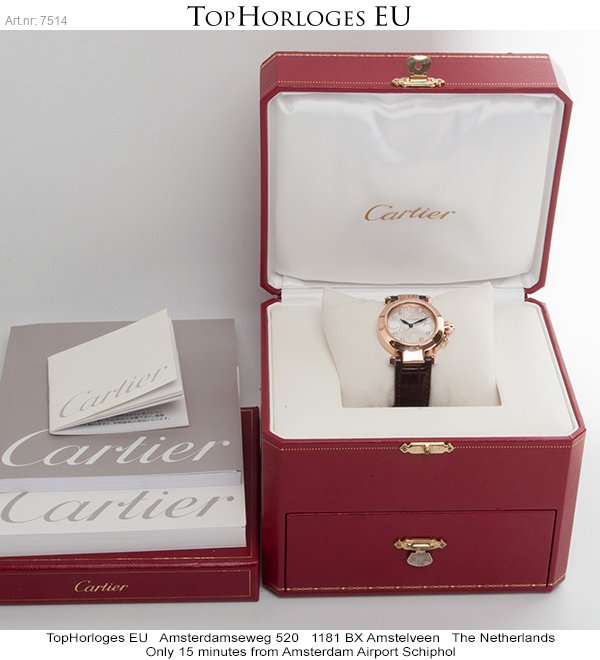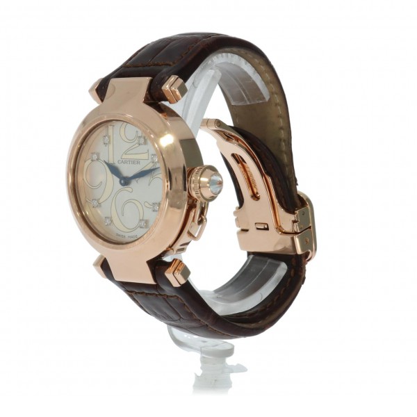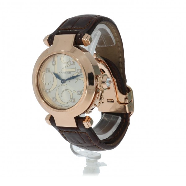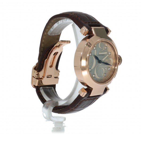 Special dial Cartier Pasha 32 in rosegold on leather strap and folding clasp