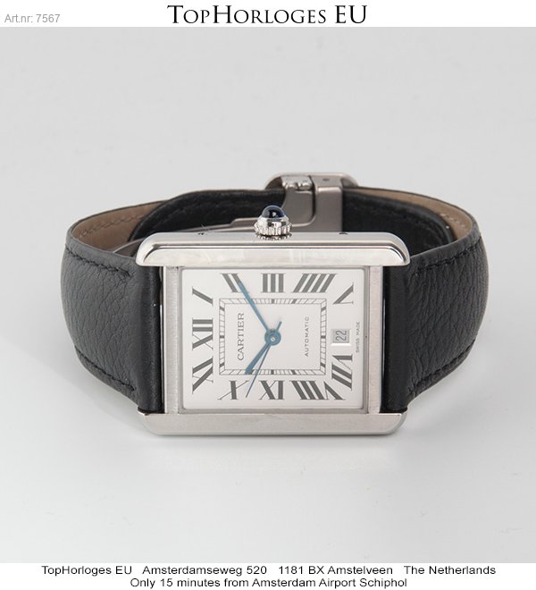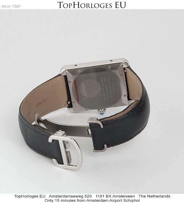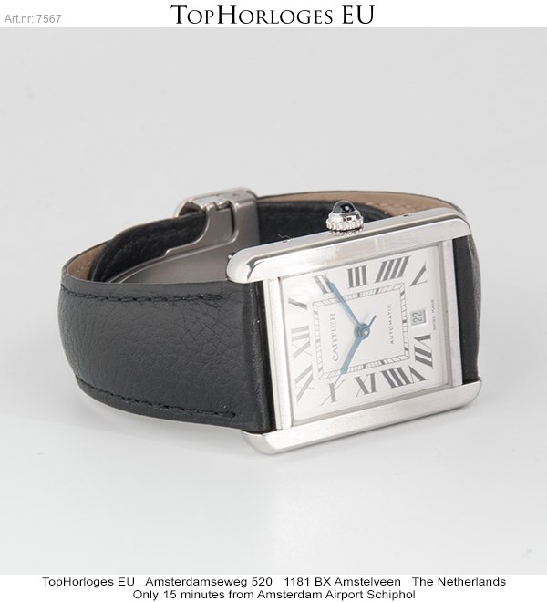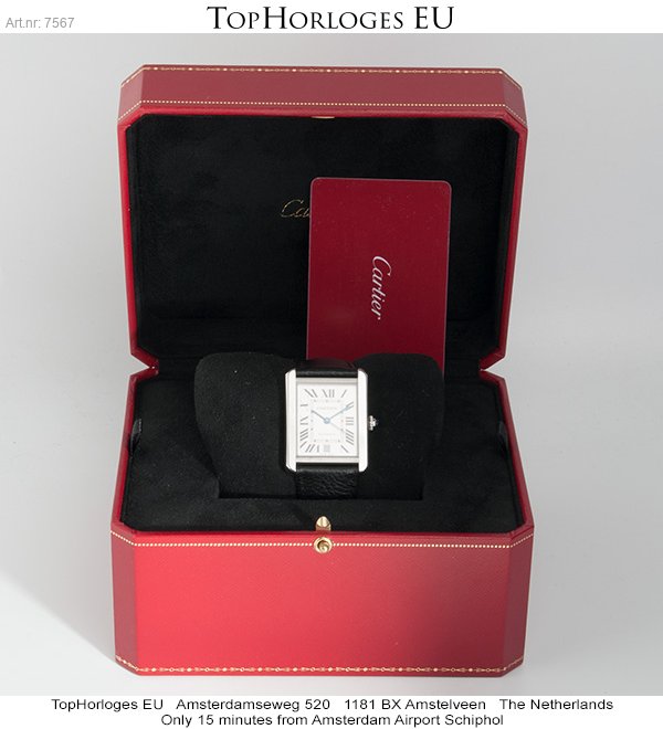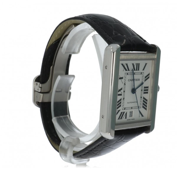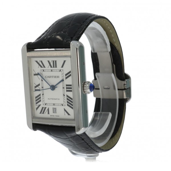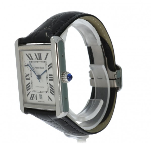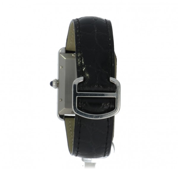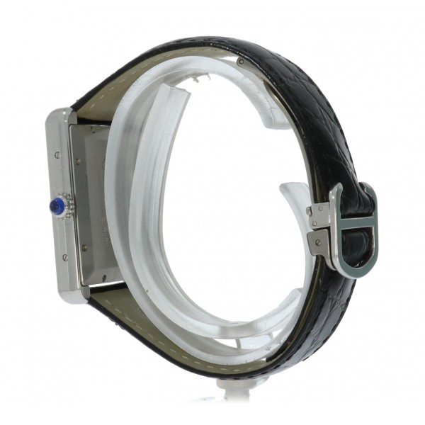 Een zo goed als ongedragen Cartier Tank Solo in het staal met lederen band