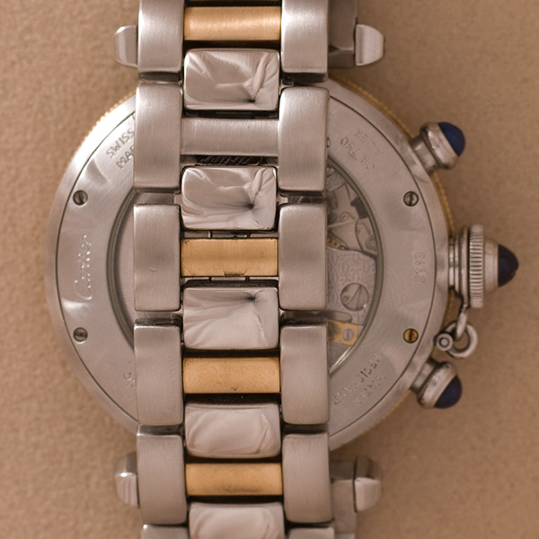 Een gebruikte goud/stalen Cartier Pasha 38 met goud/stalen band.
