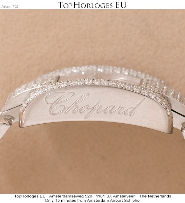 Een mooi gedragen stalen dames Chopard horloge met stalen band.