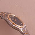 Nice worn Ebel ladies watch with a black dial. The bicolor bracelet is in a good condition.