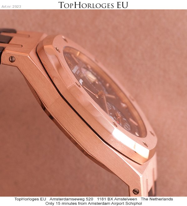A verry nice Audemars Piguet Royal Oak Dual Time in pink gold with black dial and black leather CROCOSTRAP with red gold folding clasp.