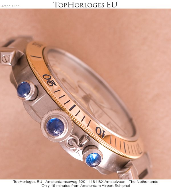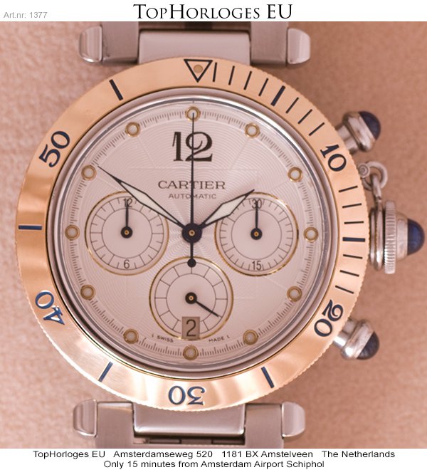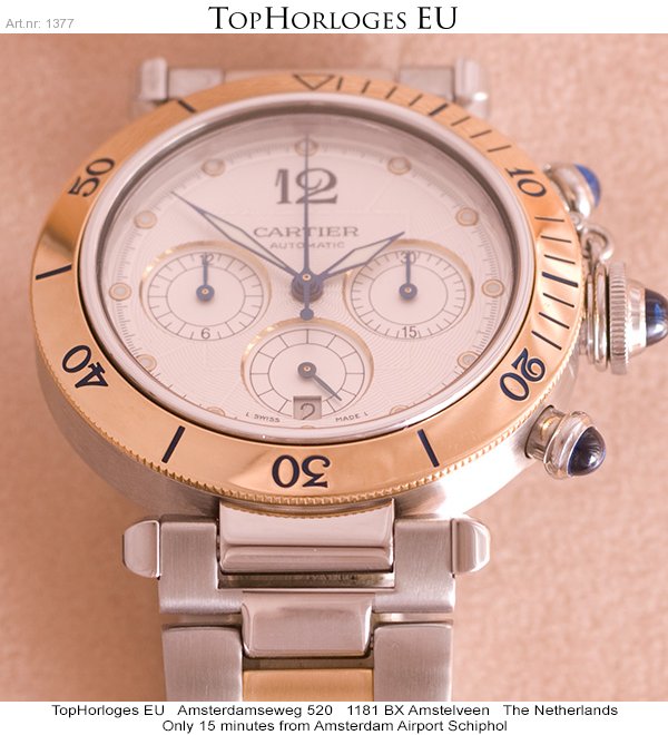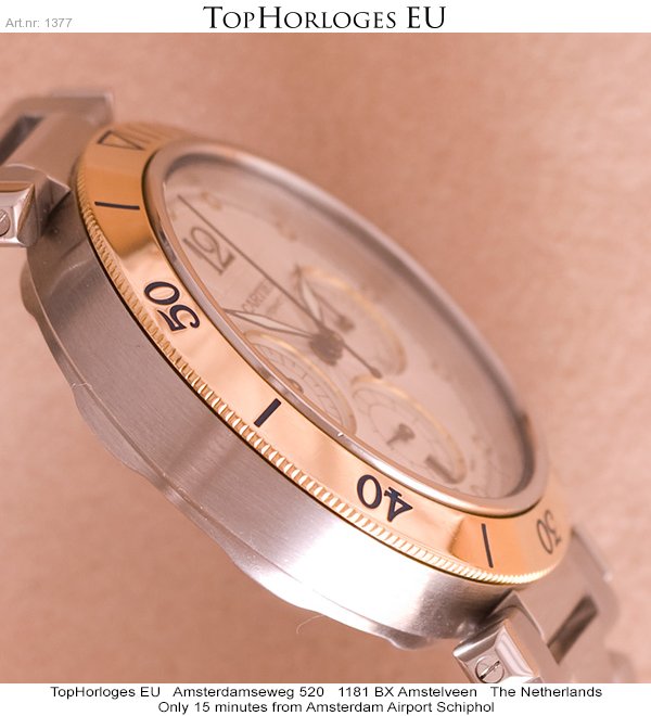 Een zeer mooie, weinig gedragen, Cartier Pasha 38mm, met goud stalen band en kast.