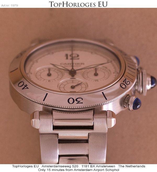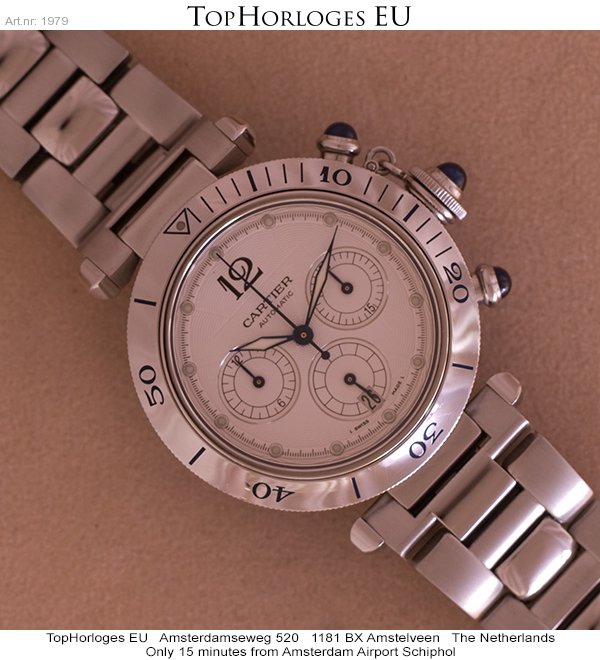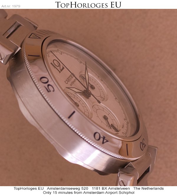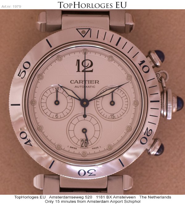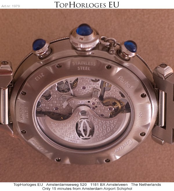 Een in zeer goede staat, stalen Cartier Pascha Chronograaf Automaat met glazen achterzijde.