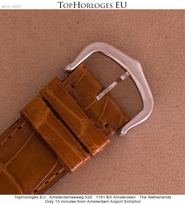 Stalen quartz uitvoering voorzien van een nieuwe hazelnoten bruine crocoband (origineel).
