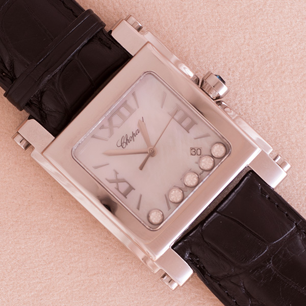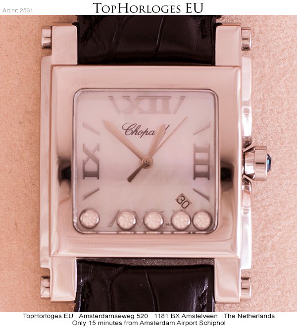Een weinig gedragen chopard Hapy Sport 2, square Extra Largeuitvoering met lederen band.