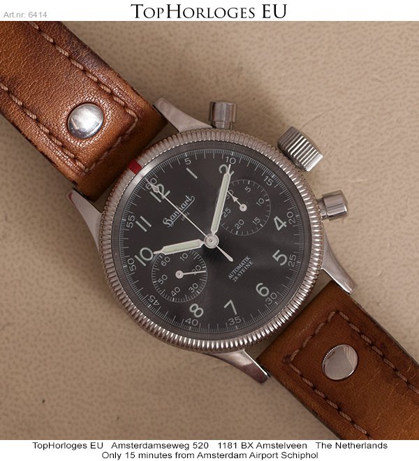 Beautiful Hanhart Admiral Chronograph in steel with leather strap.