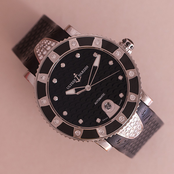 Beautiful Ulysse Nardin Ladies Diver watch in steel with diamonds.