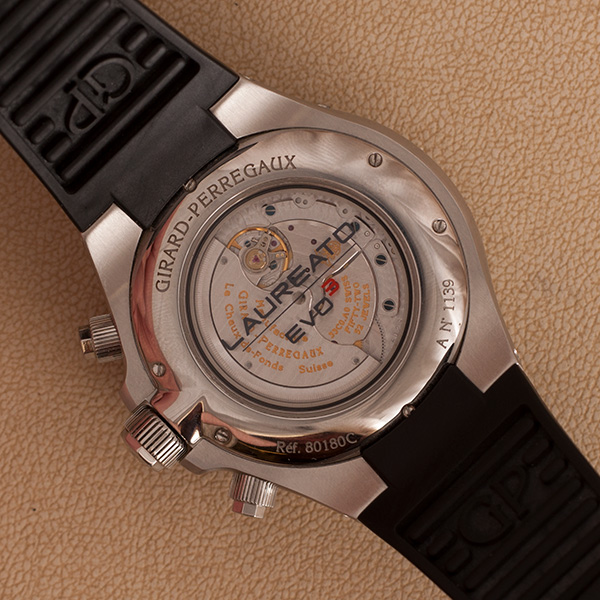Een zeer mooie Girard Perregaux Laureato Evo 3 in het staal met rubberen band en vouwsluiting