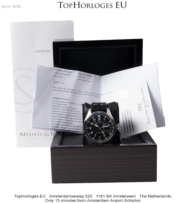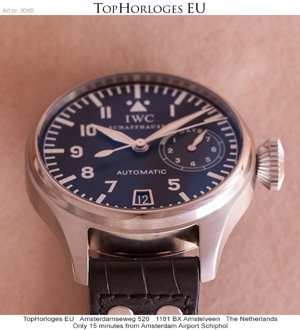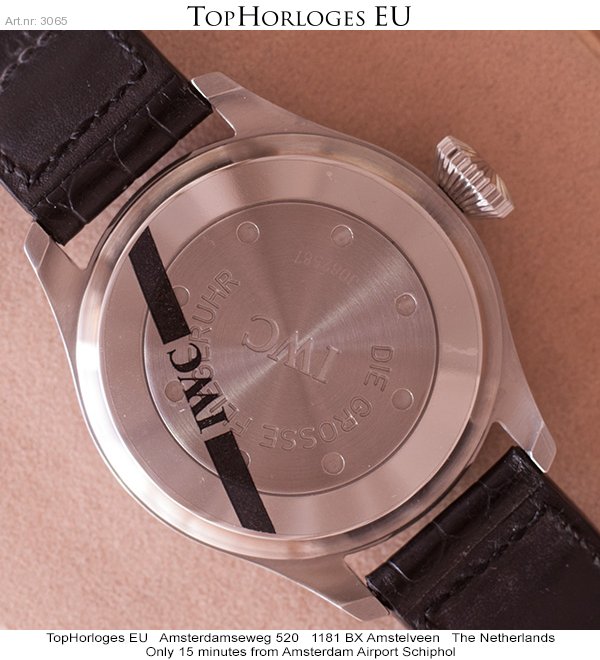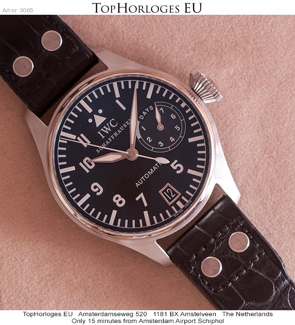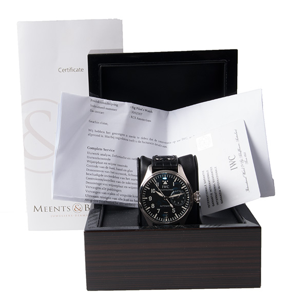 Een nog zeer mooie, 1st serie, stalen IWC Big Pilot heren horloge. Leren band met stalen vouwsluiting. Na een Complete Service bij IWC in 2013, is hij niet meer om de pols geweest.