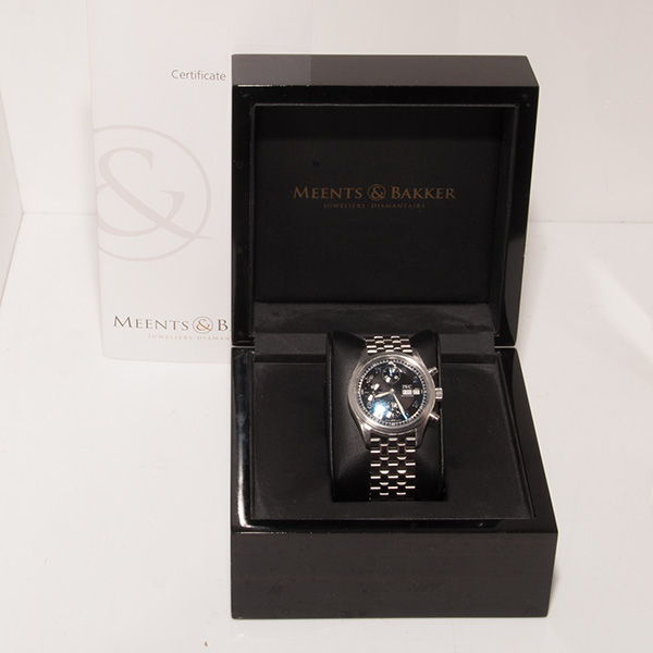 A very nice and desirable IWC Spitfire Chronograph, this steel version with the Luxery box and a certificate with 12 months warranty of our shop, is in a very good overall condition.