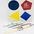 Het horloge is voorzien van een briljanten lunette en 4 verschillende kleuren banden. Parelmoer wijzerplaat met diamant om de time zone's.