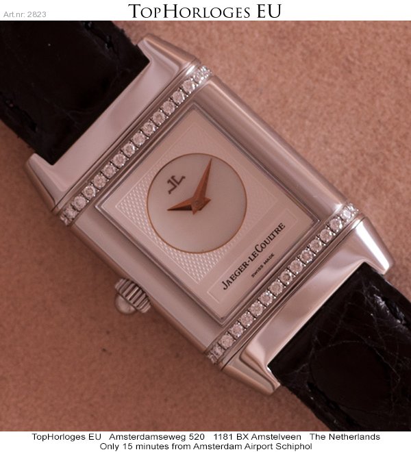 Een prachtige dames Jaeger LeCoultre met zwart lederen band.