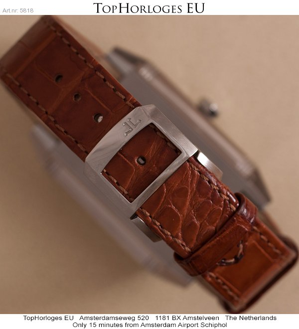 Een zeer mooie Jaeger-LeCoultre Reverso Squadra in het staal met lederen band en vouwsluiting